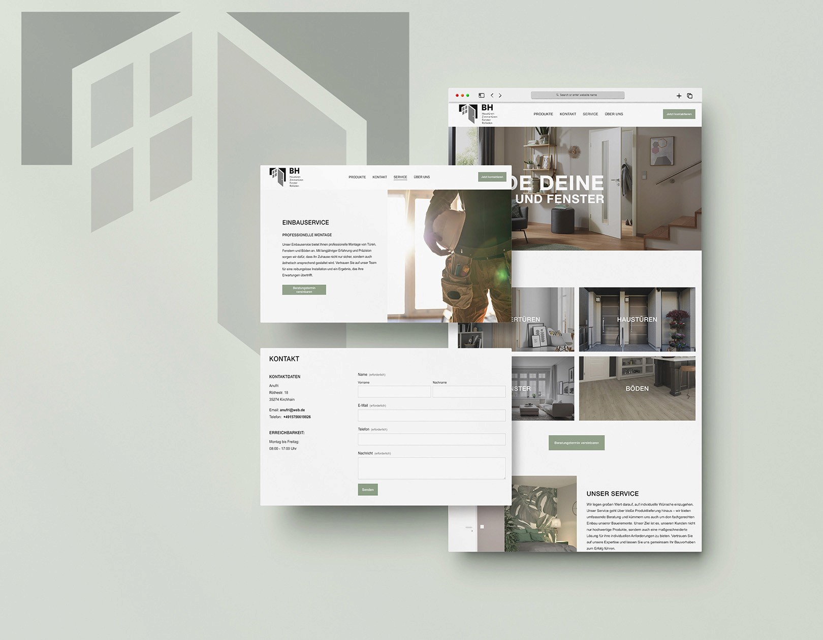 Für BH Bauelemente entwickelten wir eine moderne und übersichtliche Website, die das umfangreiche Sortiment an Türen, Fenstern, Böden und Leisten klar strukturiert präsentiert. Ziel war es, die fachliche Kompetenz des Unternehmens sowie die Qualität der angebotenen Produkte visuell und inhaltlich überzeugend darzustellen. Dabei lag der Fokus auf einer klaren Informationsarchitektur, einer ruhigen, hochwertigen Gestaltung und einer benutzerfreundlichen Navigation.